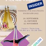 - 2613:30-16:30 – Aerial-Yoga Anfänger Workshop13:30 - 16:30Ihr Lieben, wir schweben wieder in den Tüchern. Wer dabei sein möchte, darf sich gerne bei uns melden. 20.09.2025 – Insider (für Fortgeschrittene) 14:00-15:30 Uhr, 24 Euro 21.09.2025 – Anfänger-Workshop, 13:30-16:30, 39 Euro 25.10.2025 – Insider (für Fortgeschrittene) 14:00-15:30 Uhr, 24 Eu , ...