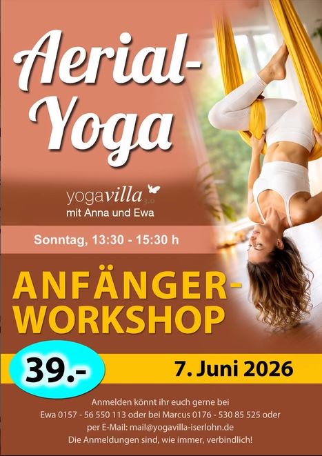 Melde dich gerne bei Ewa (0157 – 56 550 113) oder Marcus (0176 – 530 85 525) oder per E-Mail an mail@yogavilla-iserlohn.de. Die Anmeldung ist verbindlich!
