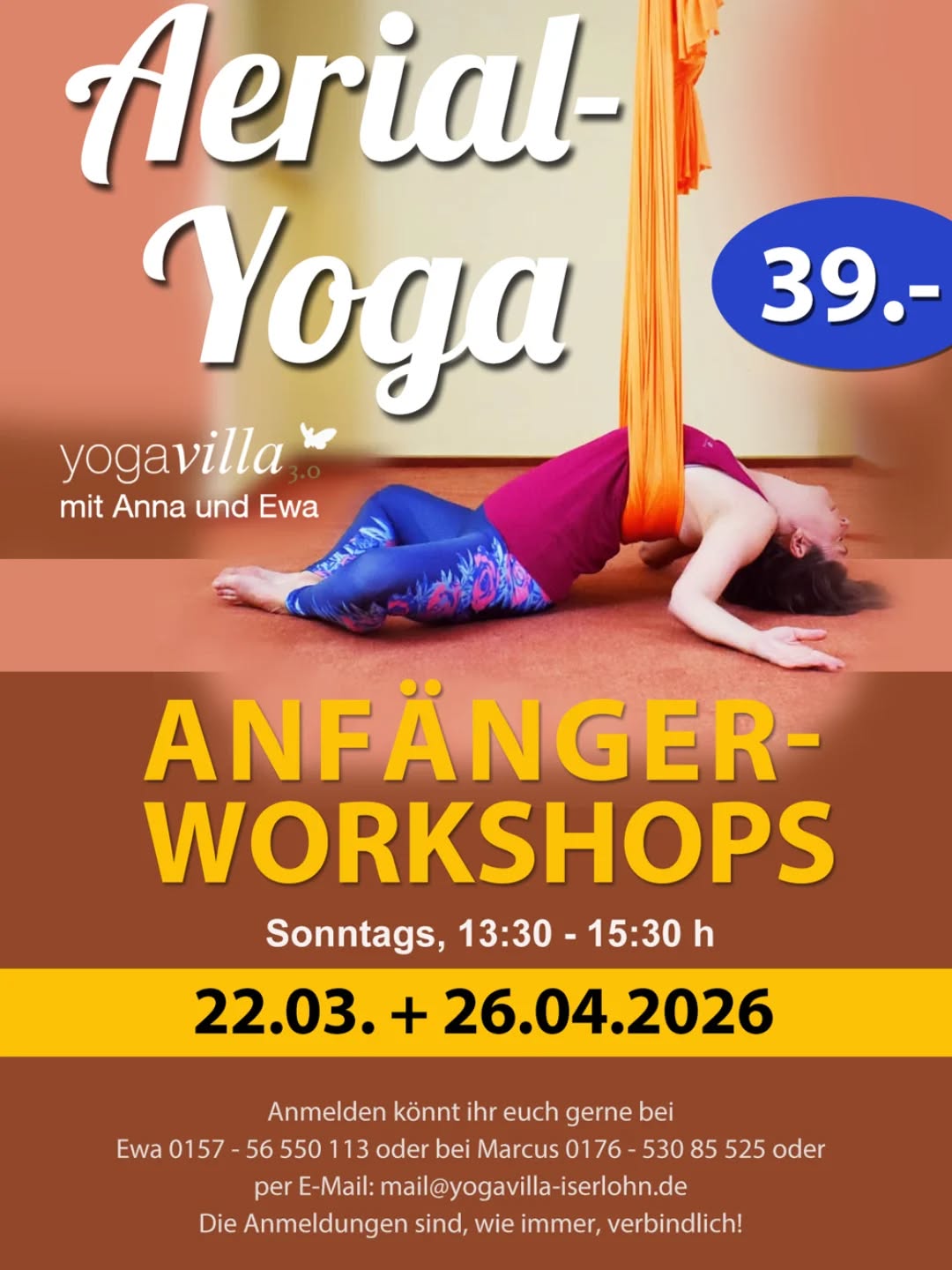Melde dich gerne bei Ewa (0157 – 56 550 113) oder Marcus (0176 – 530 85 525) oder per E-Mail an mail@yogavilla-iserlohn.de. Die Anmeldung ist verbindlich!