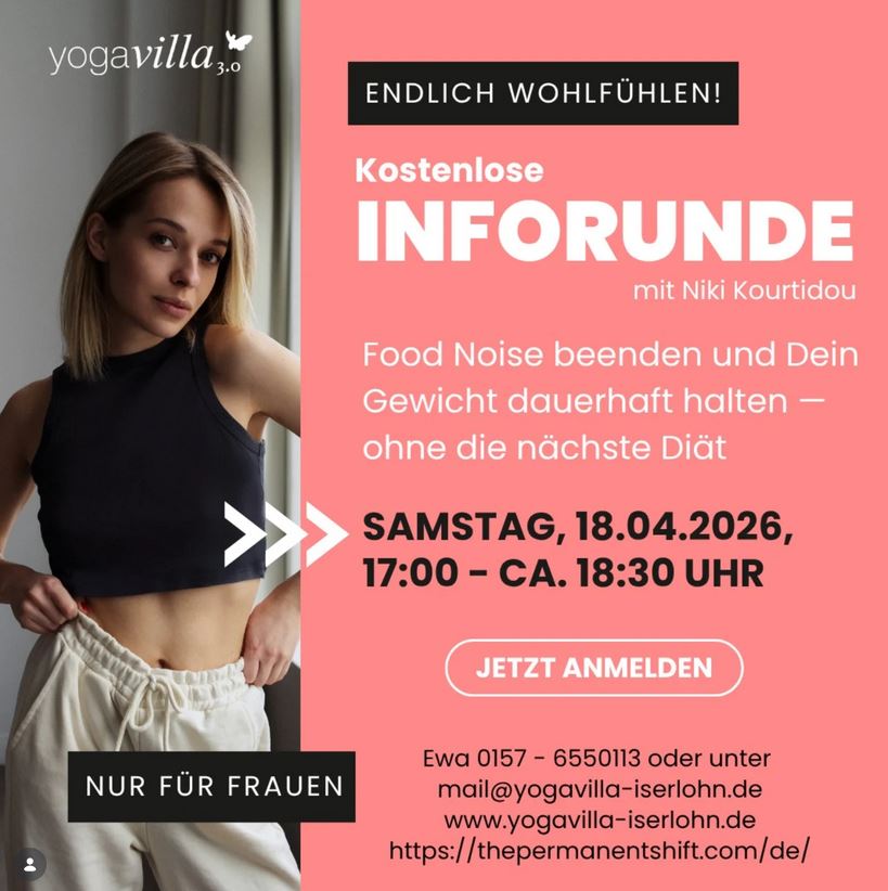Am Samstag, 18.4.2026, von 17:00 bis ca. 18:30 Uhr, bringt uns Niki Kourtidou dem Ursprung ein Stückchen näher. Tiefes Verständnis entsteht. Wir wollen keine Tricks mehr, kein Jojo-Effekt – nur echte, nachhaltige Veränderung, genau darum geht es. Lerne das Thema kennen von einer ganz anderen Seite.