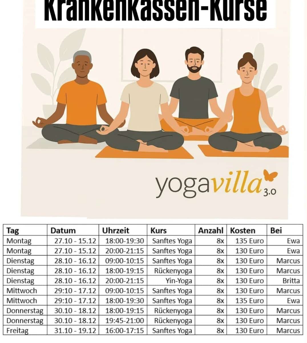 dienstags starten wir auch wieder unseren „Rückenyoga-Kurs“. Die Anmeldungen sind, wie immer, verbindlich. Die Kurse werden mit bis zu 80% von den Krankenkassen bezuschusst.